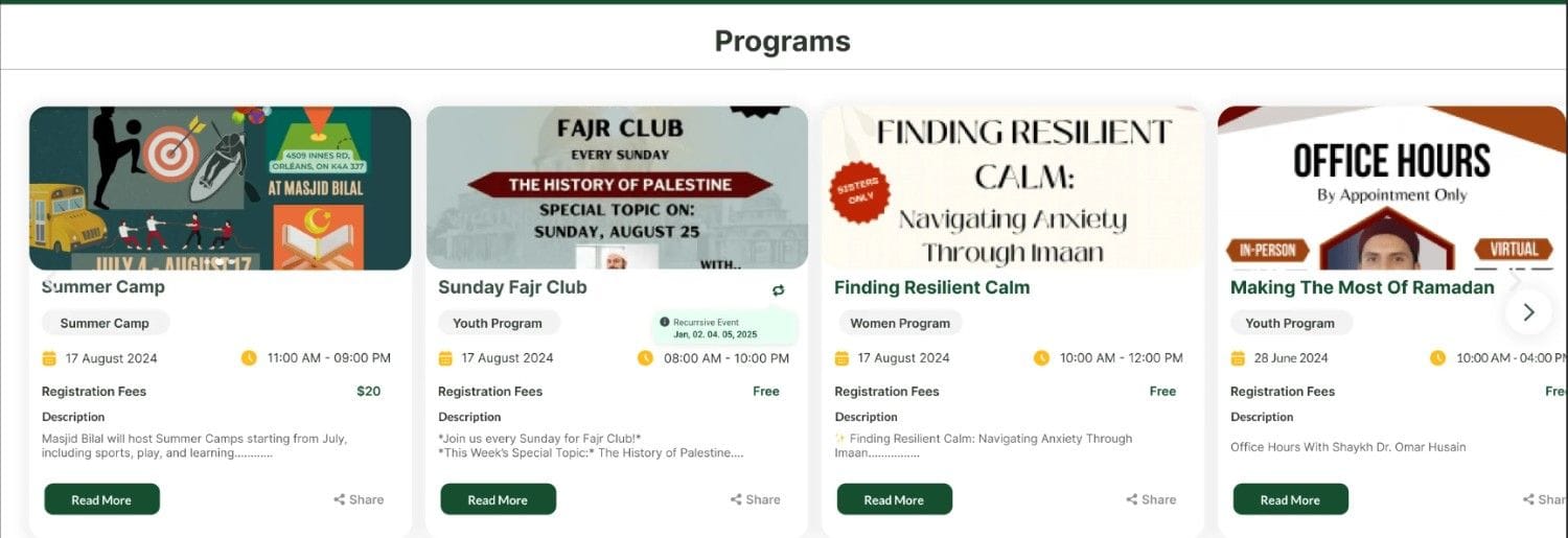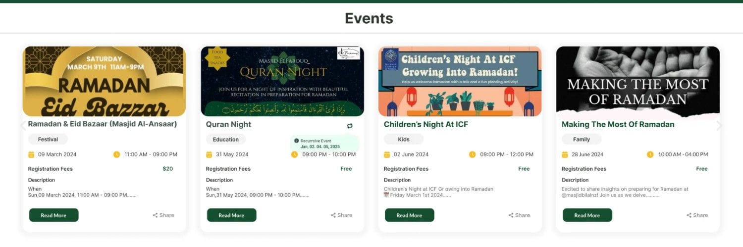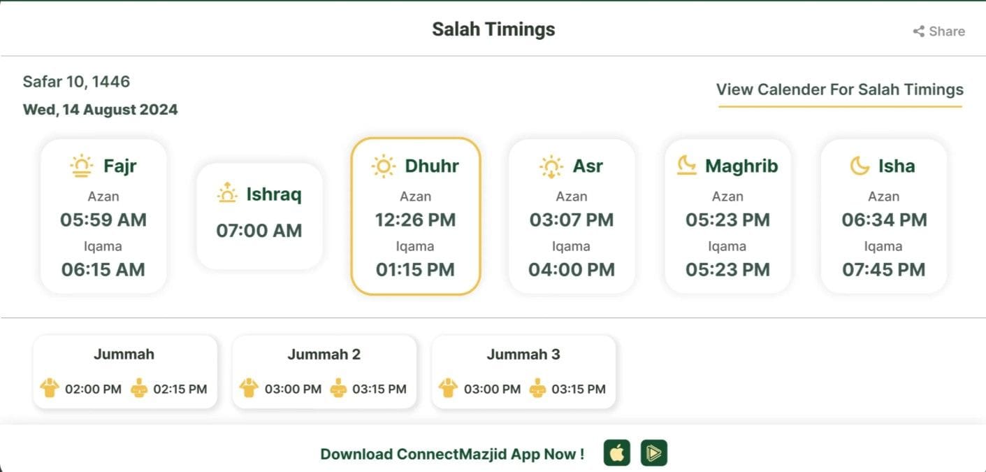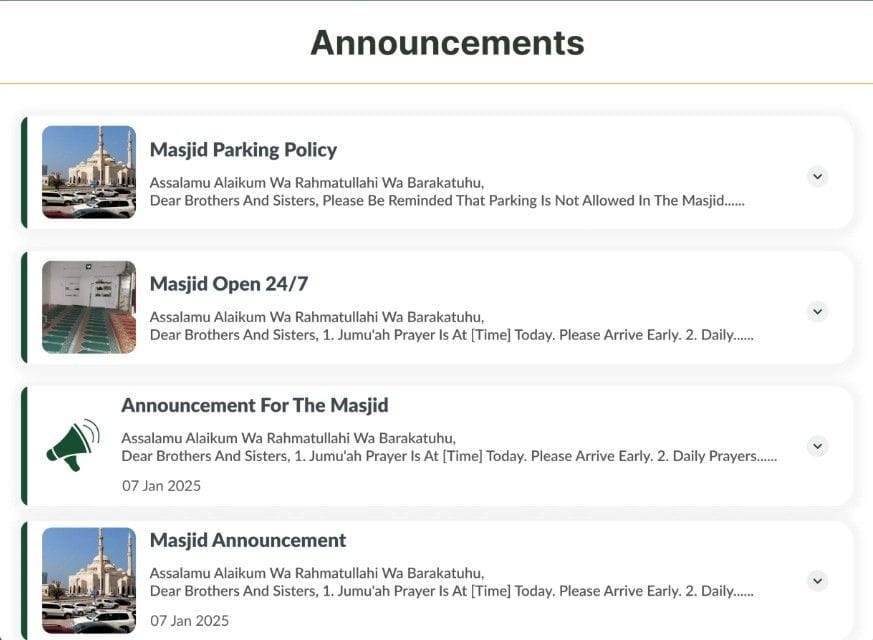 But that’s not all—CMZ web widgets take this convenience to the next level. These free and easy-to-install widgets transform your Masjid’s website into a dynamic platform for real-time updates. Whether it’s Salah timings, events, services, donations, or announcements, the widgets seamlessly integrate with your Masjid’s website, keeping your community informed and engaged.